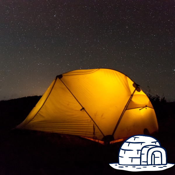 이글루 텐트는 장박 시 많이 이용되는 텐트입니다. 형태가 북극의 에스키모인들의 주거형태인 이글루와 닮았다 해서 붙여진 이름입니다. 이글루 텐트는 아크틱 텐트라고도 불리며 앞서 말씀드린 돔형 텐트와 유사하게 생겼지만 뼈대가 아치형이 아닌 조금 더 복잡한 그물형 격자나 새발 격자 같은 형태인 것이 특징입니다. 실내 공간이 높고 넓은 대형 탠트로서 4인 이상이 사용하기에 충분하고 이름답게 찬바람과 눈에 강하고 튼튼합니다.
